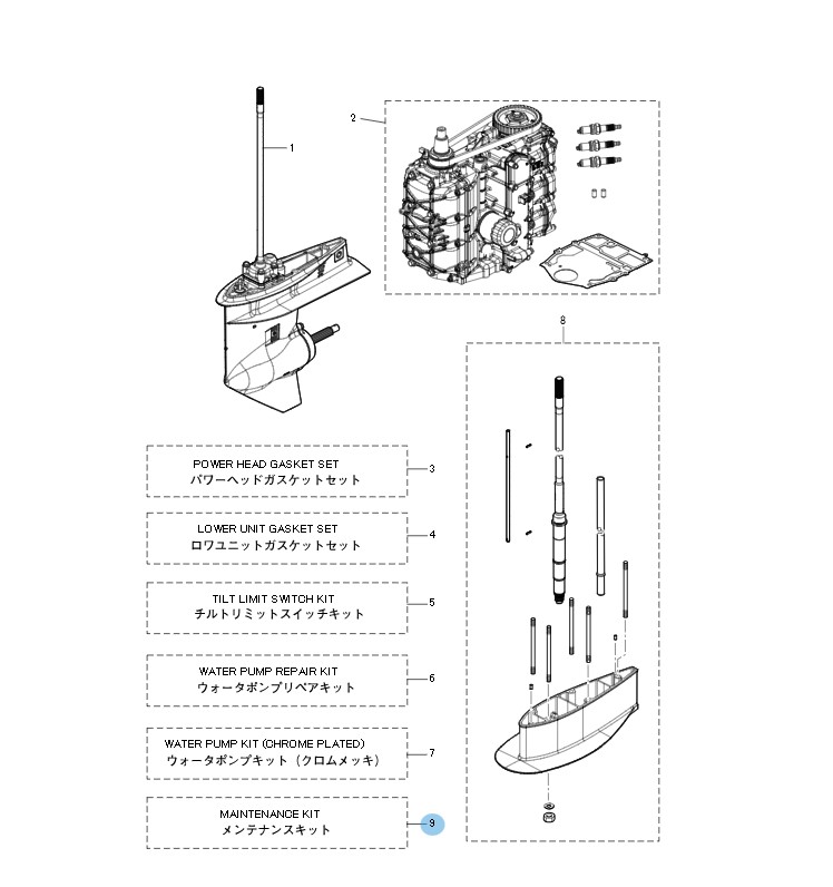 - Kit de mantenimiento OEM genuino para los modelos MFS40A y MFS50A de Tohatsu.